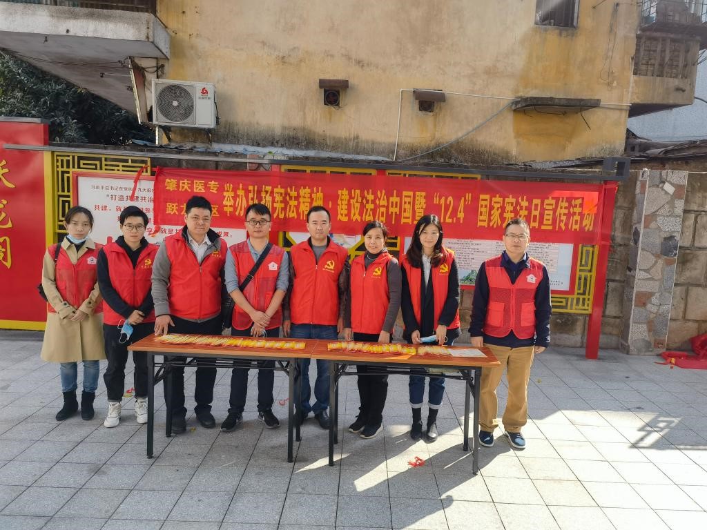 12月2日,在我国第七个宪法日即将到来之际,为让广大社区居民深入了解宪法知识、切实增强法治意识,激发群众学法、懂法、用法的热情,在社区形成良好的法治宣传氛围,肇庆医学高等专科学校机关第一党支部和思政部党支部的党员志愿者深入公司结对共建跃龙社区,积极开展“弘扬宪法精神,建设法治中国”暨“12•4”国家宪法日宣传主题党日活动。